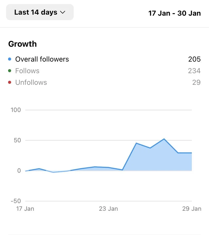 This jumped to >200 new follows in the last week (24th to 29th Jan) as I began deploying my new strategy.